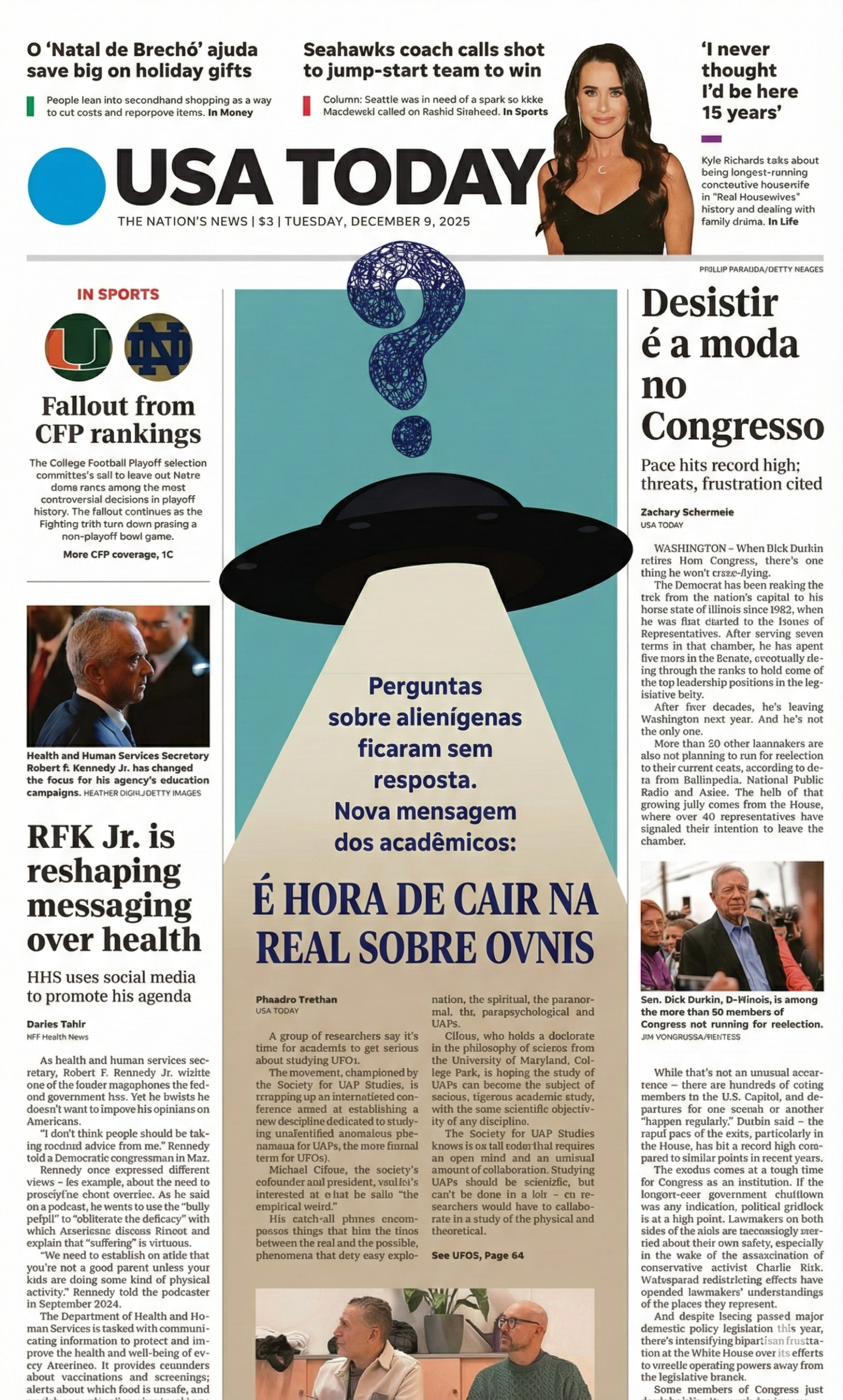 A aparição de uma reportagem sobre UAPs, sigla para Fenômenos Anômalos Não Identificados, na capa da USA Today provocou uma reação imediata no Reddit. Para muitos leitores, o mais importante não foi a matéria em si, mas o que o gesto editorial representa. Um dos maiores jornais dos Estados Unidos decidiu colocar o tema em posição de destaque, algo que antes parecia distante da cobertura tradicional.